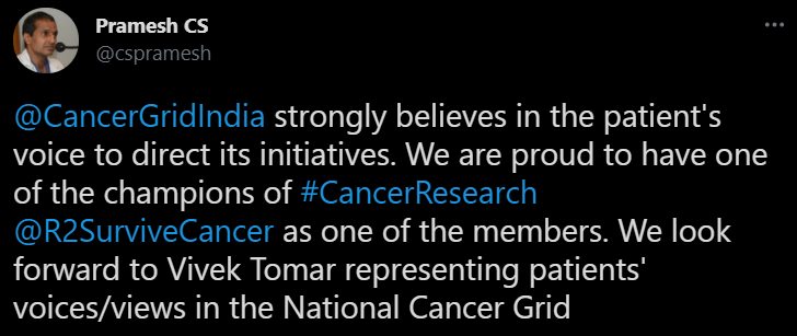 Kusum’s dream & our initiative, Patient Advocacy group “Rise To Survive Cancer” which we both have co-founded with a vision to improve India healthcare system and make patients’ voice integral part of it, is now member of esteemed “National Cancer Grid“.