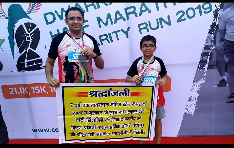 Kusum, Vivek, and their son Suryansh regularly participated in running events to raise awareness about cancer as well as research. In memory of Kusum and to honor this noble cause, Suryansh and Vivek continue to take part in various events to advocate for the cause.