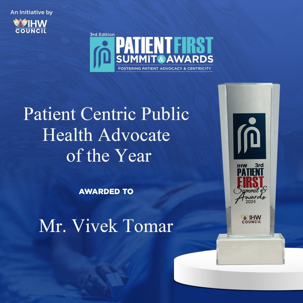 Vivek is bestowed with the prestigious title of โ๐๐๐ญ๐ข๐๐ง๐ญ-๐๐๐ง๐ญ๐ซ๐ข๐ ๐๐ฎ๐๐ฅ๐ข๐ ๐๐๐๐ฅ๐ญ๐ก ๐๐๐ฏ๐จ๐๐๐ญ๐ ๐จ๐ ๐ญ๐ก๐ ๐๐๐๐ซโ for 2024 at the ๐๐ข๐ต๐ช๐ฆ๐ฏ๐ต ๐๐ช๐ณ๐ด๐ต ๐๐ถ๐ฎ๐ฎ๐ช๐ต ๐ข๐ฏ๐ฅ ๐๐ธ๐ข๐ณ๐ฅ๐ด ceremony, in the presence of hundreds of leading clinicians, industry leaders, policymakers, scientists, and society dignitaries. This recognition is particularly meaningful as it spans all disease areasโnot just cancerโand acknowledges my volunteer work in patient advocacy, championing public health, and placing patients at the heart of care.